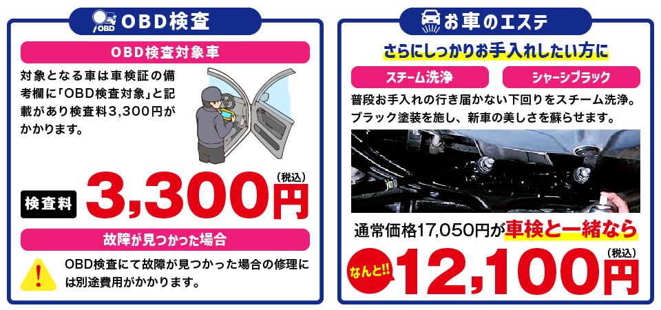 ※追加整備、部品交換が必要な場合は、別途見積もり、請求させていただきます。