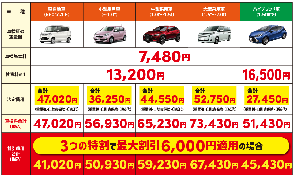 3つの特割!車検代最大6,000円安くなります!