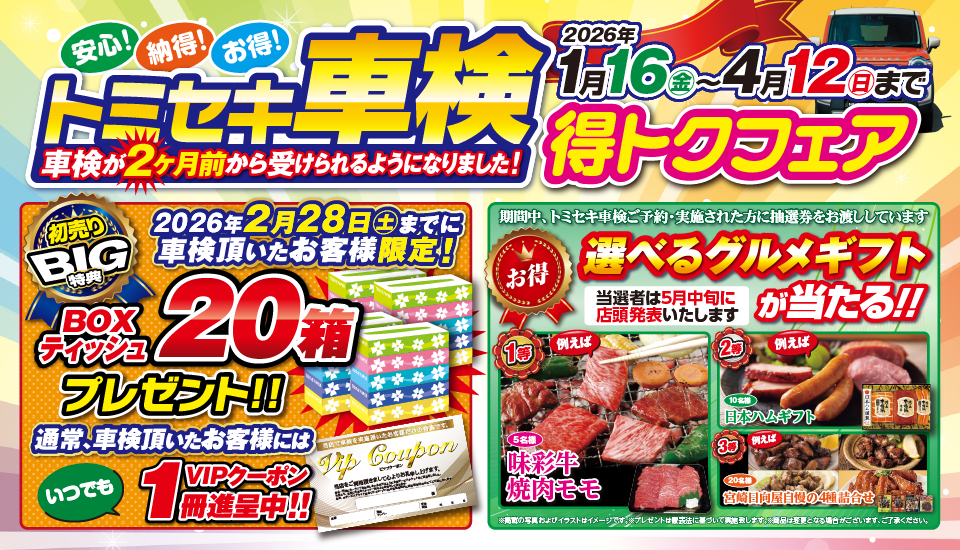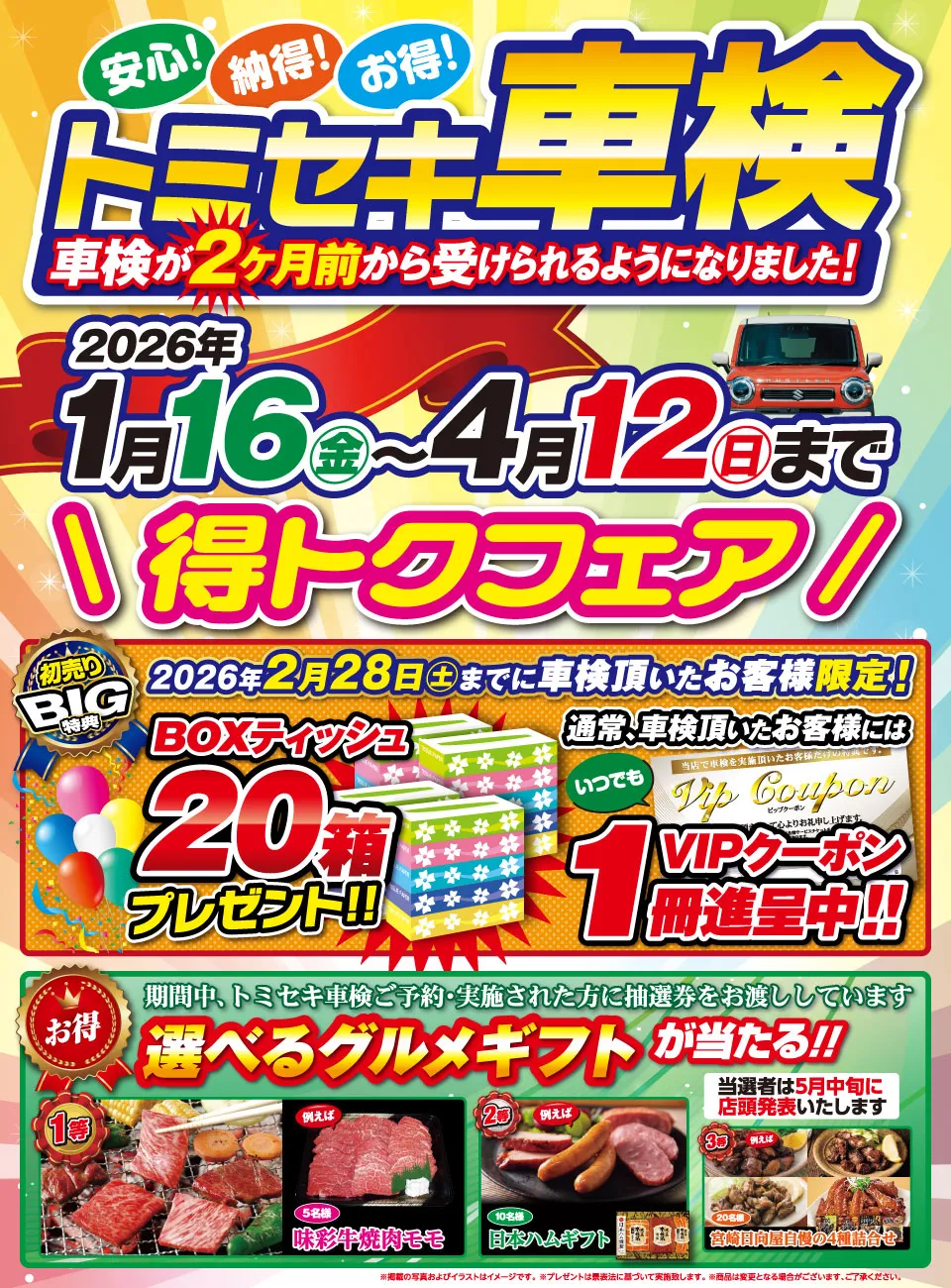 - 車検実績150,000台。トミセキ車検はユーザー車検ではなく、ディーラー車検ですので、充実した整備と豊富な経験に基づいた質の高い車検です。安心してお任せください。