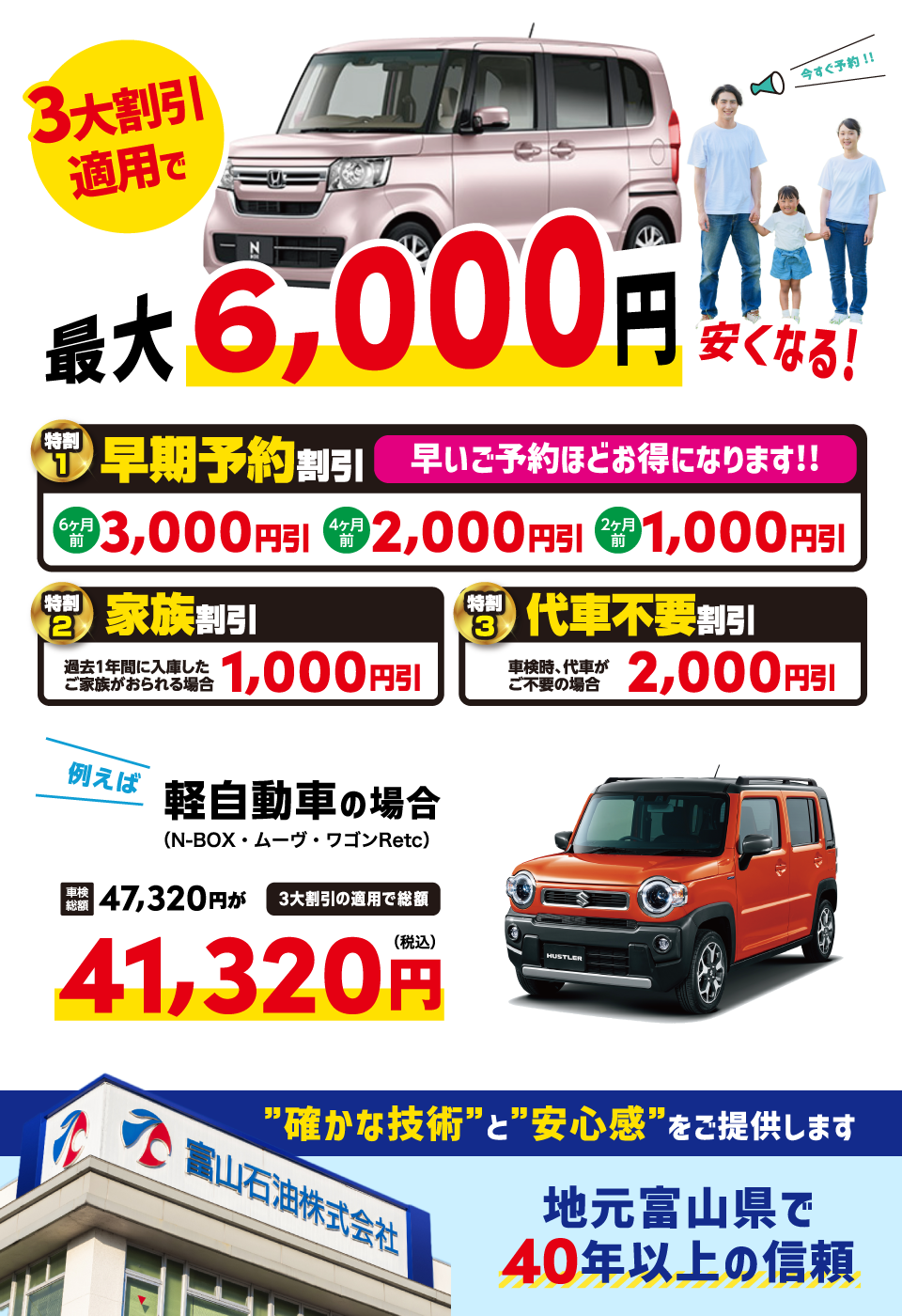 - 車検実績150,000台。トミセキ車検はユーザー車検ではなく、ディーラー車検ですので、充実した整備と豊富な経験に基づいた質の高い車検です。安心してお任せください。